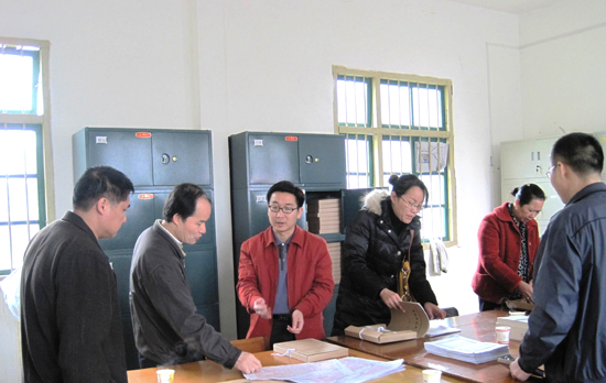 图为检查组在忻城县红渡镇检查指导林改档案工作