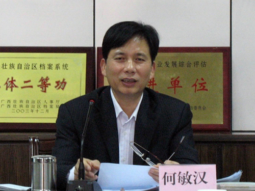 梧州市档案局局长何敏汉在会上讲话