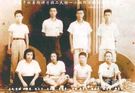 《恰同学少年》是一张泛黄的老照片,拍摄时间为1949年8月11日,内容是宁波干部学校暑期讲习班二大组一小组的结业合影。照片中,8名学员看起来大约在十八九岁,脸上充满稚气,他们是宁波第一批新中国培养的干部。当年,宁波干校通过考试方式招收学员1000名,培养财政经济、文化教育和军政工作人员,学员来自各行各业,有店员、会计、中小学老师等,年龄最大的57岁,最小的只有18岁。