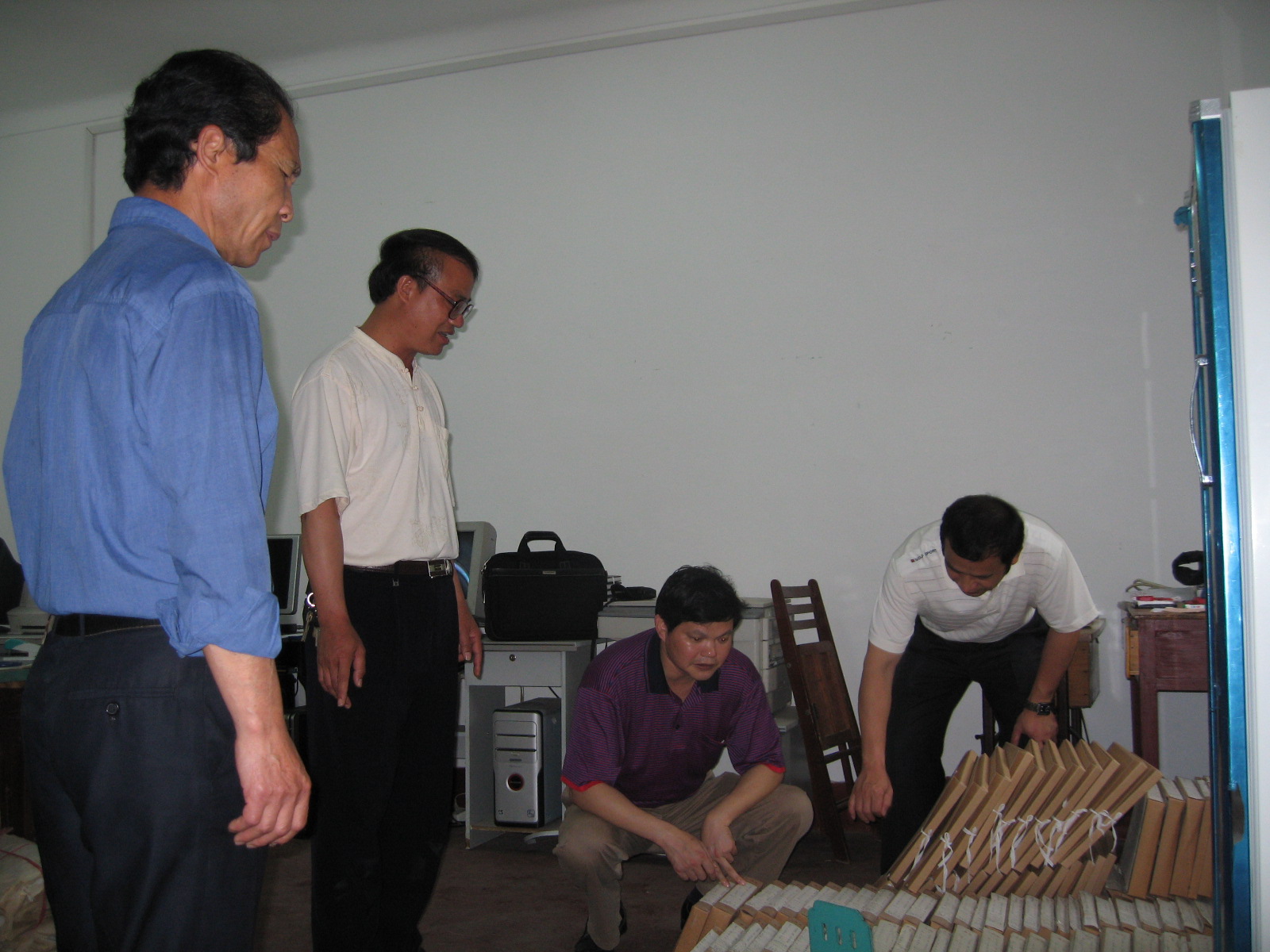 苏德明书记(右二)查看档案整理情况