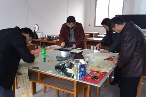 兴安县档案馆干部在档案培训室裱糊重点档案