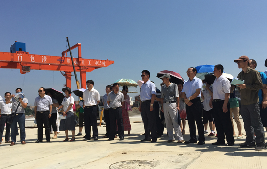6月30日,自治区档案局副巡视员胡冬林率调研组一行39人到百色港田东港区祥周作业区码头工程进行检查指导,百色市档案局局长鲍荣纲及田东县委常委、县委办主任王伟陪同检查。