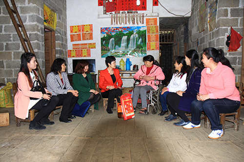覃兰花副局(馆)长(左四)慰问马山县白山镇民新村贫困妇女