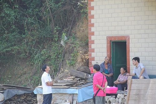 龙胜县档案史志局工作人员在李天佑生活过的金竹坳了解情况