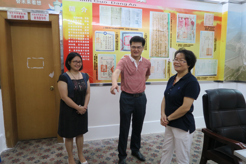 2016年7月11日,百色市委常委、秘书长黄彩毕一行专程到百色市档案局馆调研指导工作。黄秘书长一行在市档案局党组书记、局长鲍荣纲的陪同下,兴致勃勃地参观了档案数字化现场、档案珍品展厅、档案库房,黄秘书长还亲切询问了新档案馆二次装修的进展情况,目前档案工作所存在的困难和问题,并表示要及时办理和协调解决。