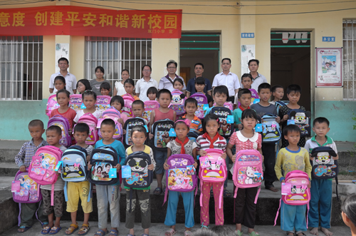 5月31日,岑溪市档案局到挂点村——波塘镇双门村小学、大公村小学开展“六一”儿童节爱心助学活动,给同学们送去书包、文具盒等学习用具60套,价值2000元文体用品、节日糖果。