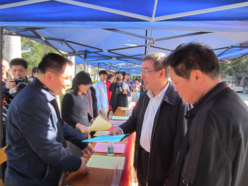 12月2日上午,为迎接2016年“12.4”法制宣传日的到来,崇左市档案局联合江州区档案局组织档案干部走上街头,来到崇左市火车站广场,为过往的群众进行法律咨询,开展法制宣传活动。