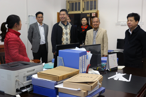 李建设(左三)到河池市档案局看望干部
