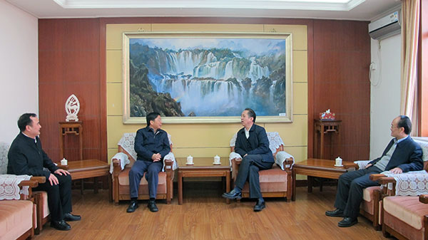 自治区党委常委、秘书长、办公厅主任王可(左二)在北京与国家档案局局长李明华(右二)会谈