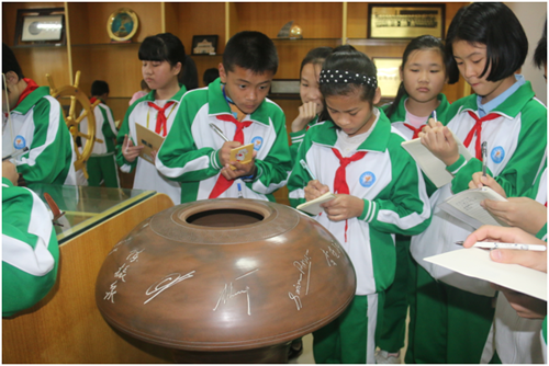 图为学生们正在认真记录实物档案“同心瓶”的相关资料