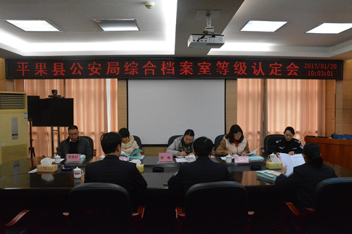 认定组最后综合评议,平果县公安局综合档案室通过县直机关一级档案室的认定。