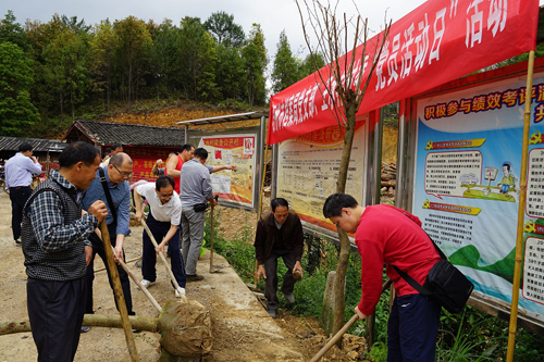 当天,市档案局领导宁波、黎明带领党员和入党积极分子到扶贫帮扶联系点王水村,与该村全体党员召开座谈会,就脱贫攻坚、对口帮扶、村基础设施建设、特色产业培育发展等进行交流座谈,广泛听取该村党员对村脱贫攻坚、脱贫致富工作的意见。宁波还结合贫困户脱贫、王水村整村脱贫摘帽、培育发展特色产业、壮大村集体经济与增加集体收入交换意见,达成共识。随后,两个支部的党员共同开展植树活动,在村委周边和道路两旁种上紫荆、风铃木等树木,美化环境。