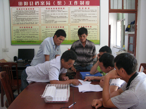 当地群众来到田阳县档案馆查找户籍档案用来化解山地纠纷。