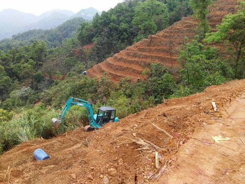 图为挖掘机正在打条带