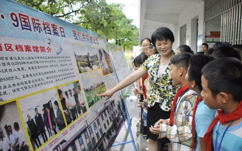 2017年6月9日是国际档案理事会确定的第10个国际档案日。区档案局在南江小学组织开展“档案宣传进校园活动”,区委常委、宣传部部长、副区长朱健,区档案局局长吴红,区教育局纪检组长梁小莉参加活动。