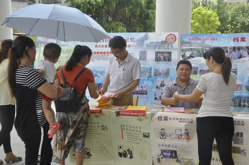 图为良庆区档案局局长龚长就(右)、副局长蔡朝晖(左)在宣传点