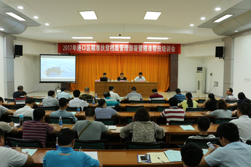 为切实做好精准扶贫档案管理工作, 2017年6月27日,港口区在党委七楼会议室召开2017年精准扶贫档案管理工作部署培训会。区直各单位、各镇(街道)分管领导及扶贫档案管理业务骨干;有扶贫任务的村(社区)扶贫档案管理业务人员及驻村第一书记共110人参加。会上,区政府副区长刘晓红部署我区精准扶贫档案管理工作,区扶贫办主任和区档案局局长分别对全区精准扶贫档案管理工作进行了专题培训。