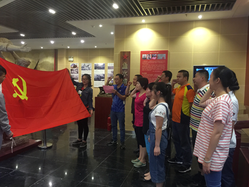 为纪念建党96周年,7月1日,桂林市叠彩区档案局支部党员赴桂林灌阳开展“ 不忘初心 重走长征路”主题党日活动,参观考察红色教育基地——新圩阻击战陈列馆和酒海井红军纪念亭,重温入党誓词,缅怀红军英烈,弘扬长征精神。
