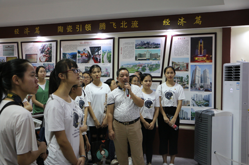 图为北流市档案局邹深源副局长在陈列室为玉林师院“追求红色足迹”署期社会实践团作讲解
