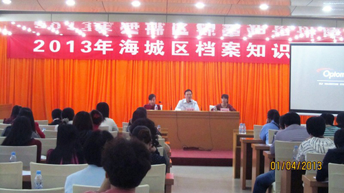 2013年4月1日,海城区档案局在海城区政府北三楼会议室举办了一期《档案知识专题讲座》,参加听课的有区辖各街道办事处、区直各单位等从事档案工作的专兼职档案员70多人。此次讲座邀请了北海市档案局专家授课,主要讲授了四个方面的内容:一是文书档案整理方法;二是照片档案整理方法;三是实物档案整理方法;四是档案编研。