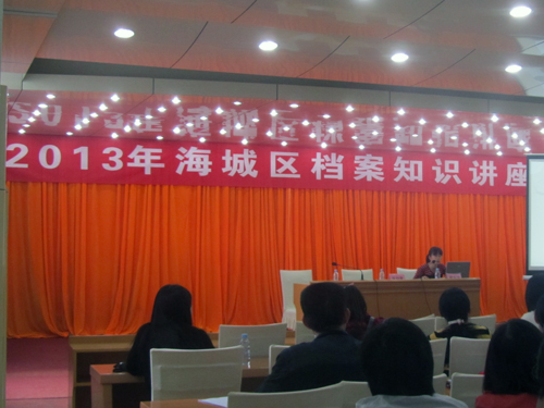 4月1日下午,2013年海城区档案知识讲座在海城区会议室召开,海城区区委常委、区委办主任张均康等出席并讲话。全区70余名机关专兼职档案管理员参加了讲座。