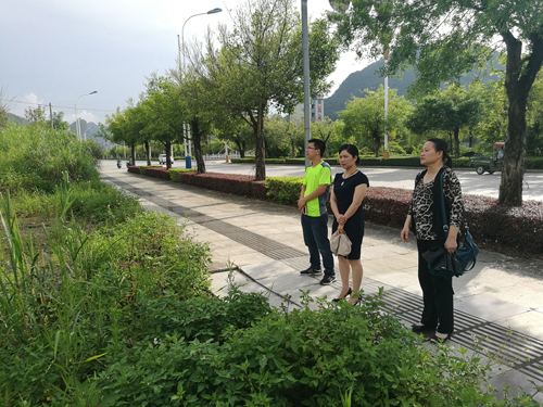 图为金城江区副区长廖琼英(中间)实地考察档案新馆建设项目