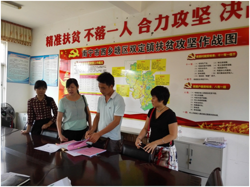 近期,由西乡塘区扶贫办、档案局工作人员组成的精准扶贫档案督查组一行4人,到双定镇督查精准扶贫档案规范化建设试点创建工作。