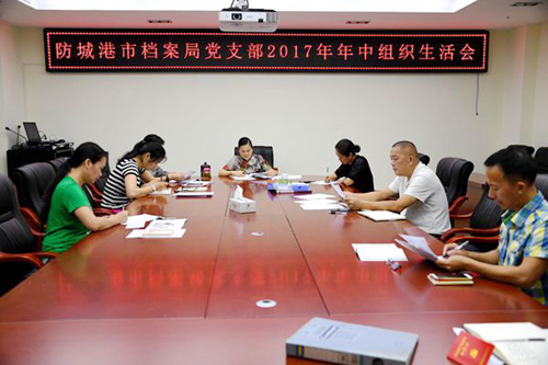 防城港市档案局党支部开展“党员固定活动日”活动暨2017年年中专题组织生活会