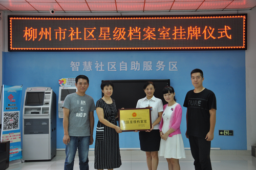 9月5日,柳州市社区星级档案室挂牌仪式在狮山社区举行,市档案局业务科科长叶敏,鱼峰区档案局副局长李雪莲参加了挂牌仪式。狮山社区是鱼峰区第一家社区星级档案室,也是全市首家通过社区星级档案室考评的社区。