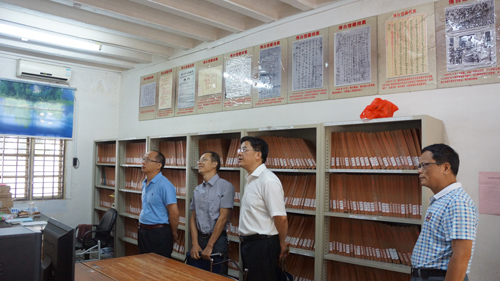 玉林市委常委、副市长何文格到博白开展档案工作调研(左一)