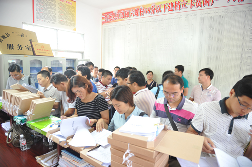 9月12日忻城县召开2017年脱贫摘帽工作推进会,全县各乡(镇)主要领导、分管扶贫工作领导、贫困村第一书记及信息员(档案员)参加了会议,会议第一阶段现场观摩忻城县红渡镇六蝶村脱贫摘帽档案工作情况,大家纷纷就精准脱贫档案工作进行交流、提问、讨论等,充分认识到档案工作在扶贫中的重要作用,进一步掌握了精准脱贫档案收集整理归档的方法和要求。