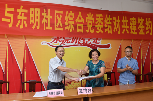 近日,玉林市档案局组织在职党员干部深入到东明社区开展“双报到”活动, 并与东明社区结成共建单位,签订《共建协议书》,帮助社区和群众排忧解难。