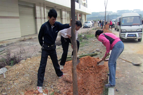 到达目的地后,大家都兴致勃勃地挽起袖子、拿起锄头忙碌起来,扶苗、挖坑、培土、踩实,每一道工序都做得认真细致、一丝不苟,大家干得热火朝天,现场一片繁忙的景象。真正是劲往一处使,汗往一处流,为创建美丽象州献出自己的一份力。