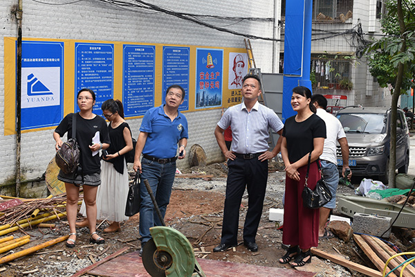 东兰县县委常委、宣传部部长罗荣辉(右二)实地察看东兰县国家综合档案馆项目建设进度