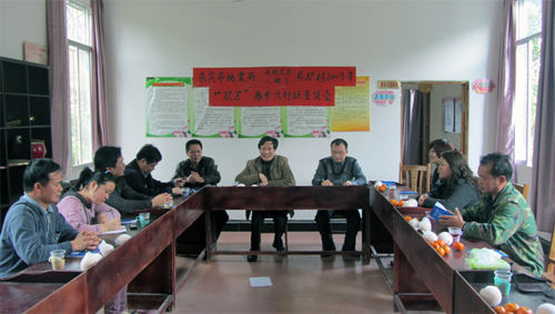 2月17日全市“万名干部进村入户,万户农民进城住家”春季大行动电视电话动员会结束后,金秀县档案局积极响应号召,18日,李峻廷局长率领工作队深入大樟乡花炉村开展“双万”活动。工作队首先在村委召开座谈会,听取村委干部的工作汇报,与村委干部及包村乡领导干部畅谈花炉村经济发展规划。通过座谈,一是明确了以发展油茶种植为主的产业发展路子,2013年计划新增种植600亩油茶;二是大力发展竹鼠、山鸡等特色养殖;三是谋划黄田马鞍河漂流旅游项目,以旅游业带动其它产业的发展。座谈会结束后,工作队来到地头与群众一起劳动,帮助群众开垦荒山、砍草,为种植油茶备耕。当天,挂点联系的市地震局领导干部一行4人也参加了这次活动。