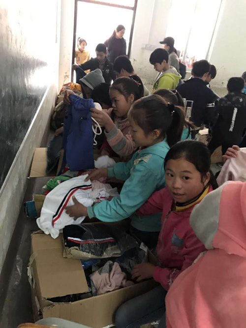 元旦前夕,2017年12月29日,都安县档案局利用开展迎接省级扶贫成效交叉核验和国家脱贫攻坚第三方评估检查,干部入户帮扶“八查三核三明白”等工作之际,携爱心人士走进隆福乡渔洞村龙恩小学、渔洞小学与贫困学生欢度元旦佳节。活动当天,我局干部随同上海路由公益爱心人士把筹集到的冬装衣物共280套发放到龙恩小学、渔洞小学共280名贫困学生手中,与小学生提前过元旦佳节,以实际行动助力贫困农村教育工作,让贫困地区人民群众和学生有了更多获得感、幸福感、安全感,在走向实现全面建成小康社会目标的路上充实了满满的爱心和正能量。图为发放衣物现场。
