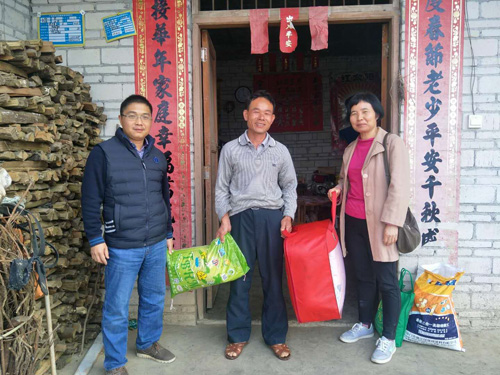 2018年元旦即将到来之际,容县档案局干部在副局长黄胜尤带领下,到对口扶贫帮扶点——黎村镇六胜村开展扶贫走访慰问活动。