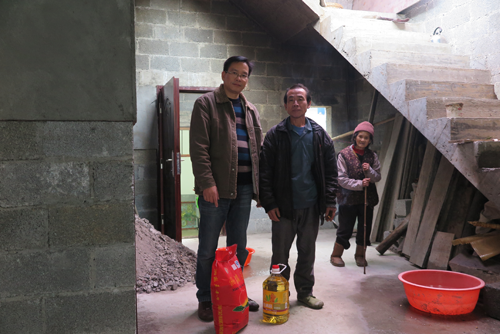 河池市档案局韦明副局长(左一)深入帮扶联系村慰问帮扶户群众