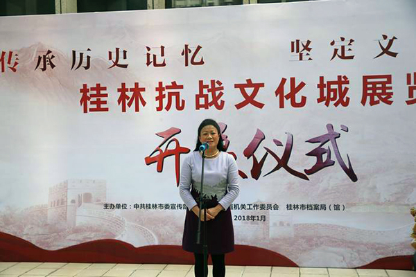 2018年1月22日下午,由桂林市委宣传部、桂林市直属机关工委、桂林市档案局共同承办的《烽火中的文化绿洲——桂林抗战文化城》展在临桂新区新建的桂林市档案馆展览厅隆重开幕,桂林市委常委、市委宣传部部长、副市长陈丽华出席并宣布开展,市政协副主席罗永东出席并致辞。