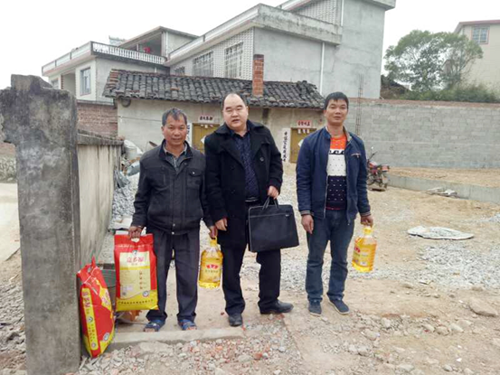 新春佳节临近之际,为让贫困群众过上喜庆、温馨的节日,2月11日,鹿寨县档案局支部书记韦安富带领党员干部一行5人先后深入黄冕镇大端村及寨沙镇全坡村,对13户贫困户开展春节走访慰问活动。