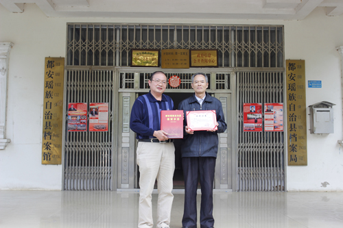 3月2日,都安瑶族自治县档案局(馆)收到了珍贵的地方志文献大礼物--《都安县瑶族自治县保安乡志》三本,该局(馆)为该书主编谭绍经同志颁发了捐赠证书。