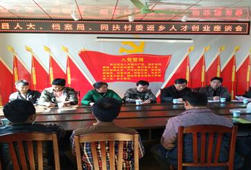 2018年3月12日下午,金秀瑶族自治县人大常委会领导和档案局全体干部到扶贫联系点头排镇同扶村参加返乡创业人才座谈会,共商脱贫大计。