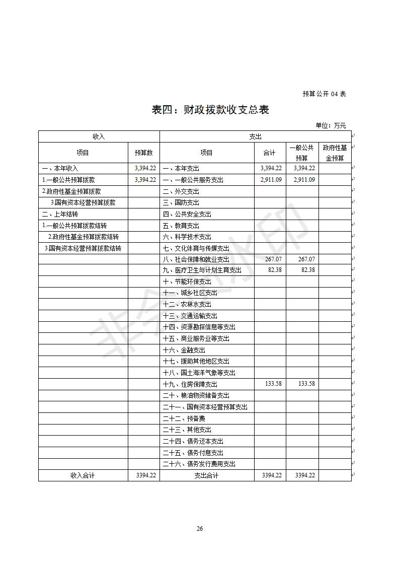 (一)一般公共财政预算拨款3,394.22万元,同比(3,393.31万元)增加0.91万元,增长0.03%。