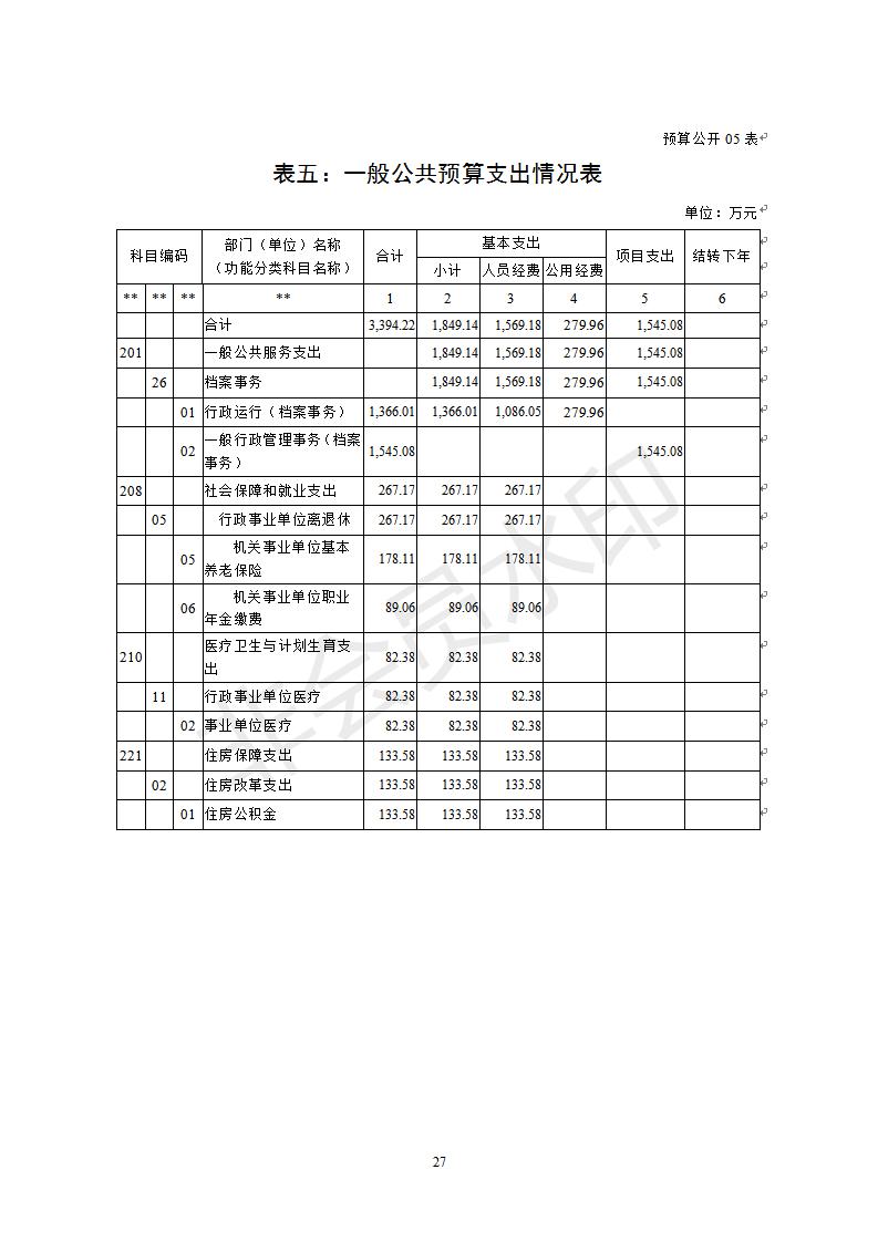 十五、一般公共服务(类)档案事务(款)一般行政管理事务(项):指主要用于我馆为完成各项档案工作任务、保障档案事业发展而发生的项目支出。