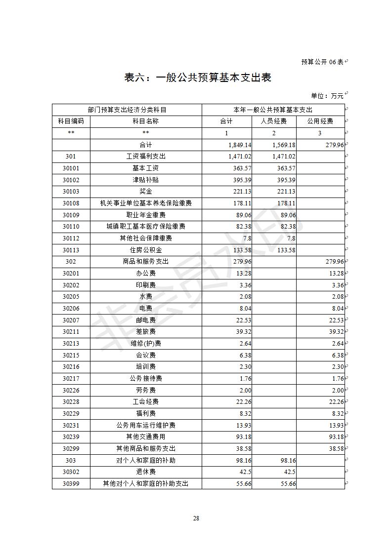 表六:一般公共预算基本支出情况表(预算公开06表)