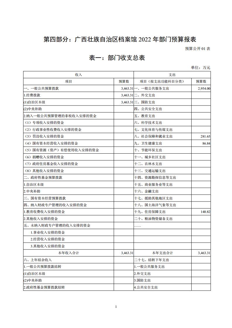 表一:部门收支总体情况表(预算公开01表)