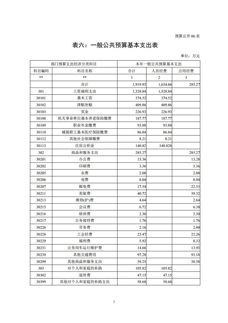 表六:一般公共预算基本支出情况表(预算公开06表)