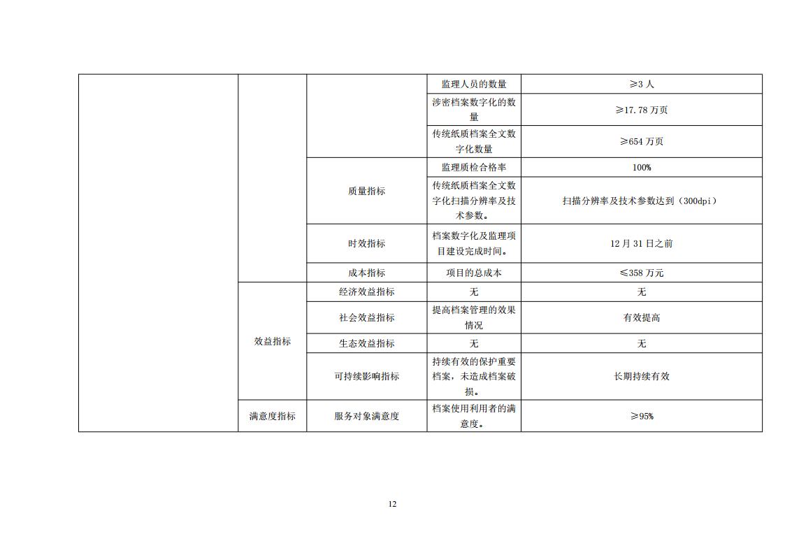 项目年度绩效目标:2022年继续对建国后的重要档案进行全文数字化,即对约654万页纸质档案数字化进行整理、编目、数字化扫描,每页0.45元,预算经费294万元;档案数字化工作监理费用年初预算28万元;开展多媒体档案数字化扫描年初预算28万元;开展馆藏涉密档案数字化8万元。开展档案数字化及监理工作共计划投入358万元,推进馆藏档案数字化建设,有助于实现跨馆跨区域查询,在政务平台上实现资源共享利用,实现档案永久保存。