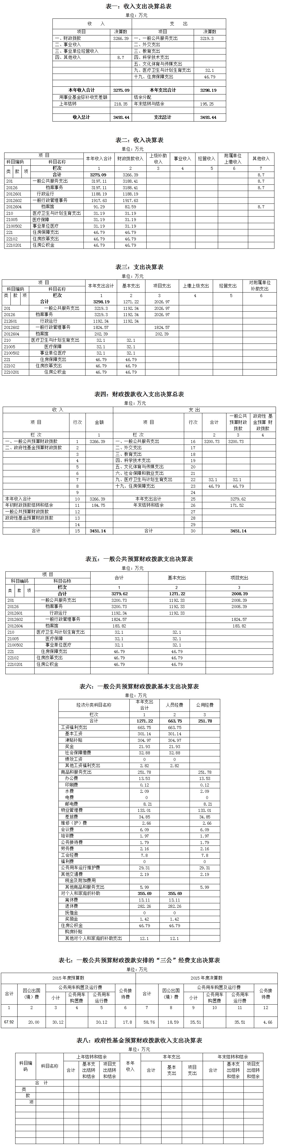 第二部分:广西壮族自治区档案局2015年部门决算报表