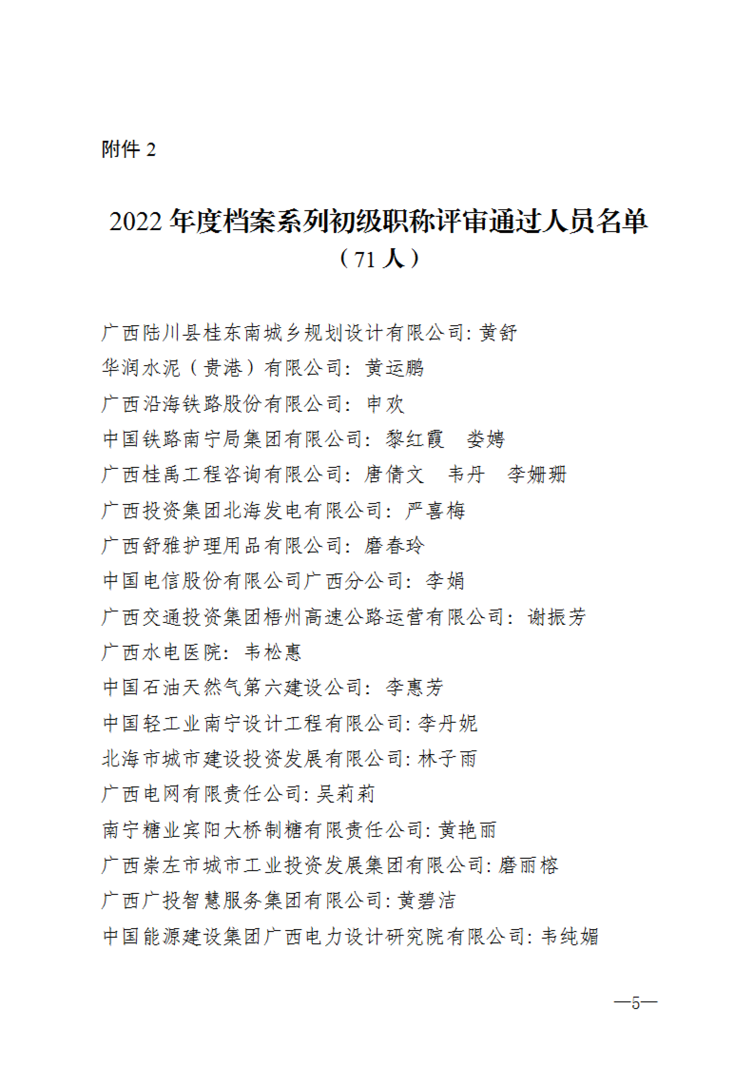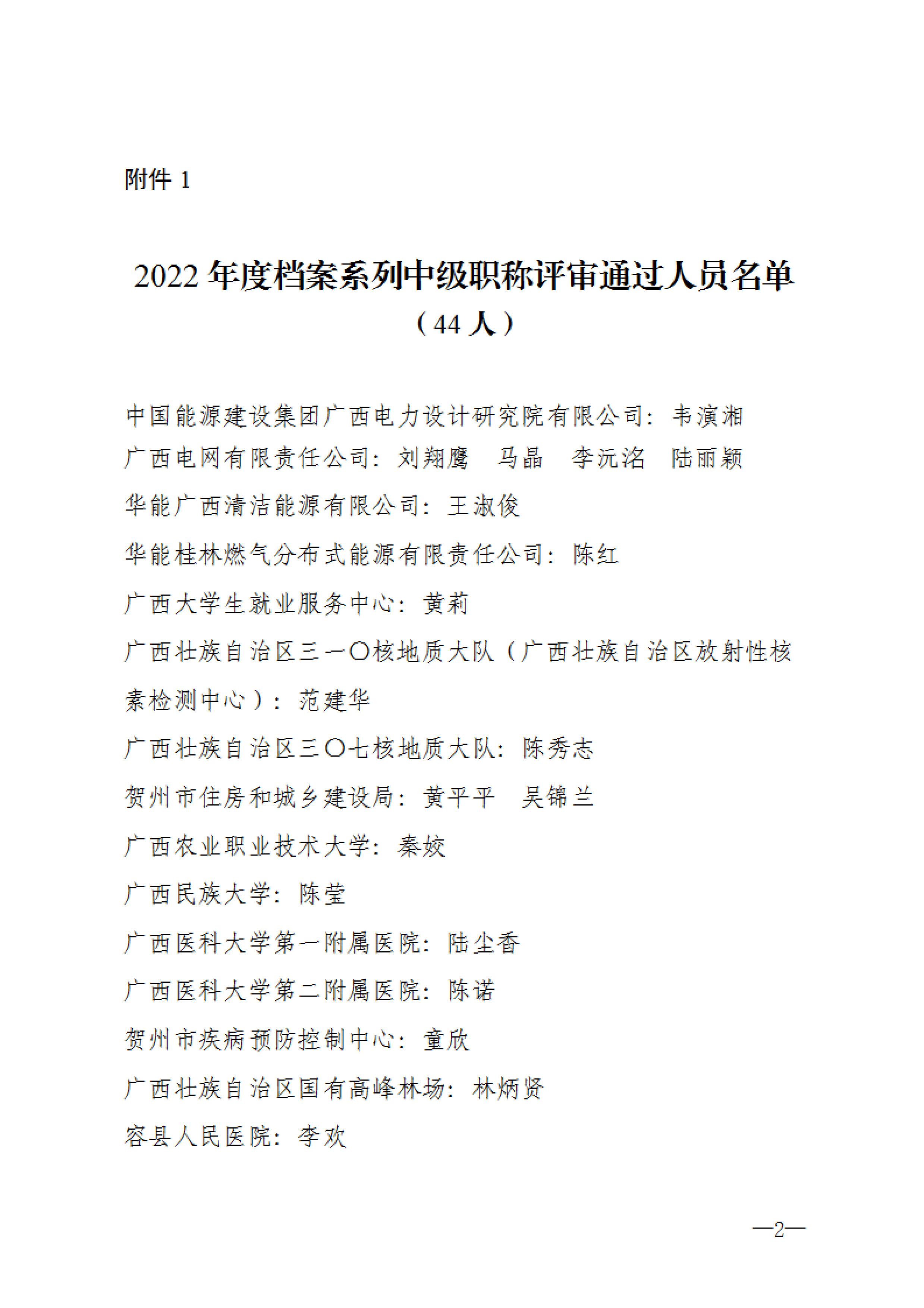 附件:1.2022年度档案系列中级职称评审通过人员名单